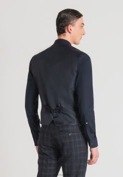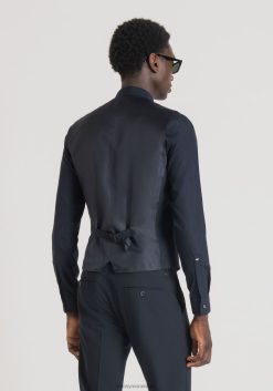 ملابس Antony Morato صدرية بقصة ضيقة من مزيج الفيسكوز المطاطي مع نقش مربعات حبر أزرق رجال JVZ2232