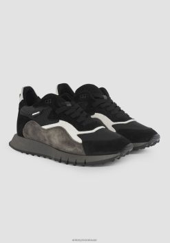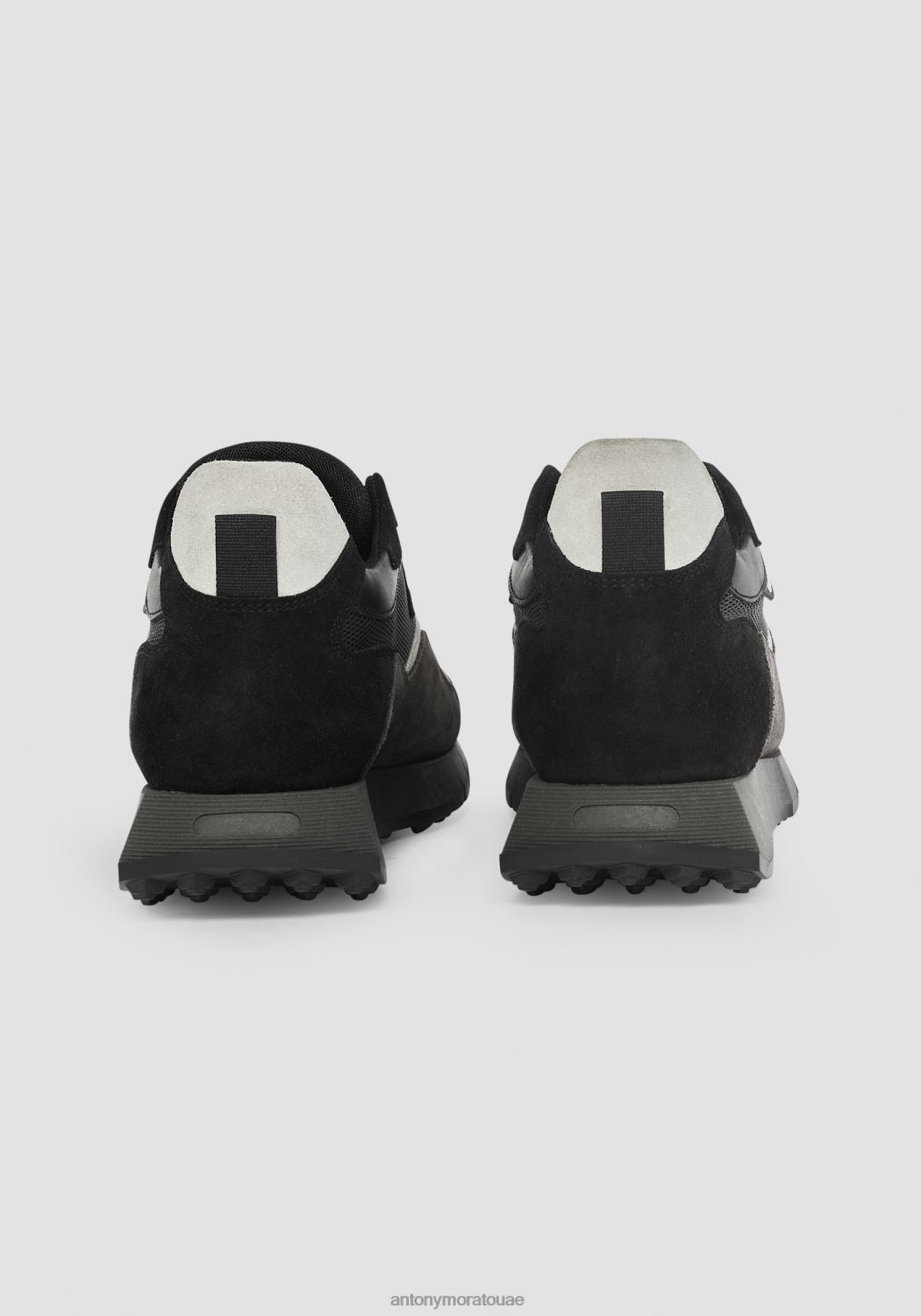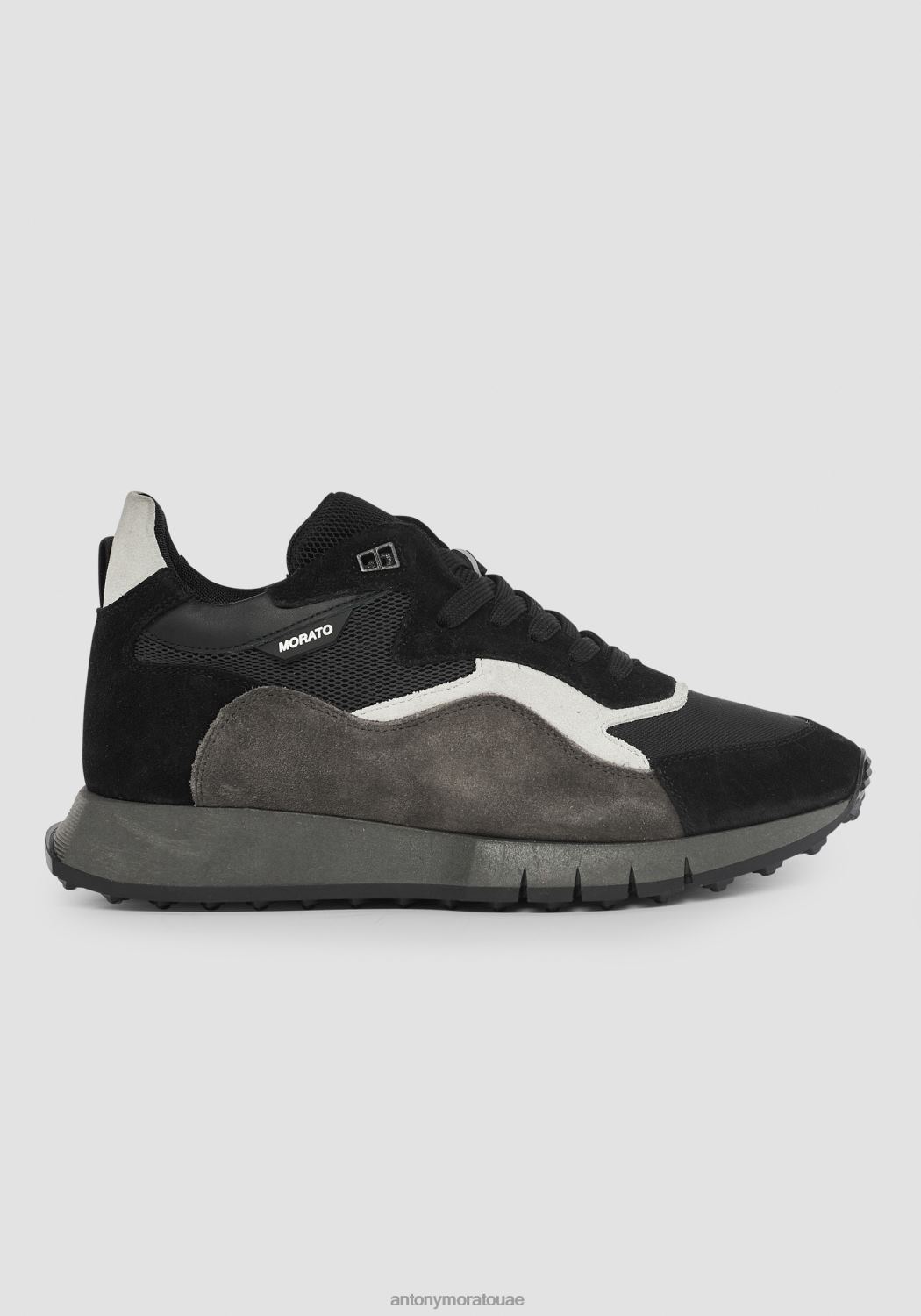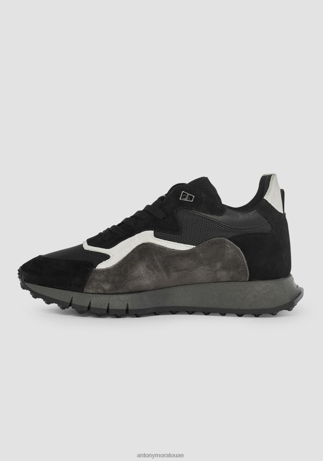 أحذية Antony Morato حذاء رياضي من الجلد والقماش مع لوحة شعار أسود رجال JVZ22317