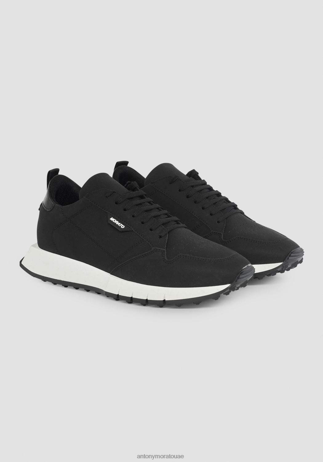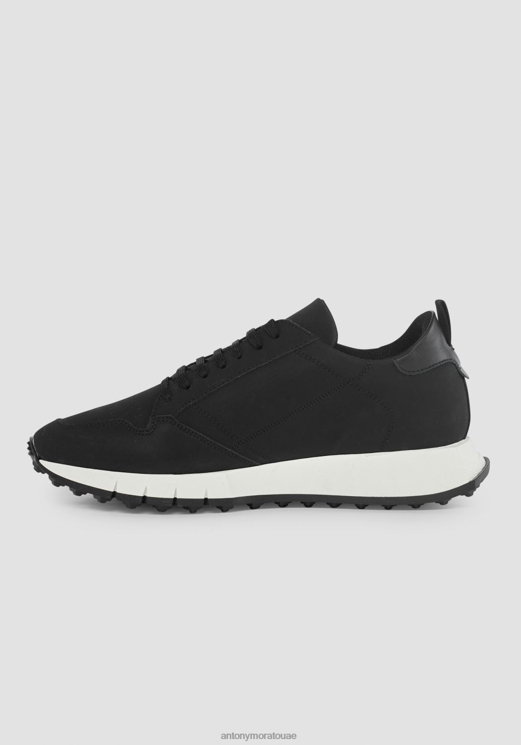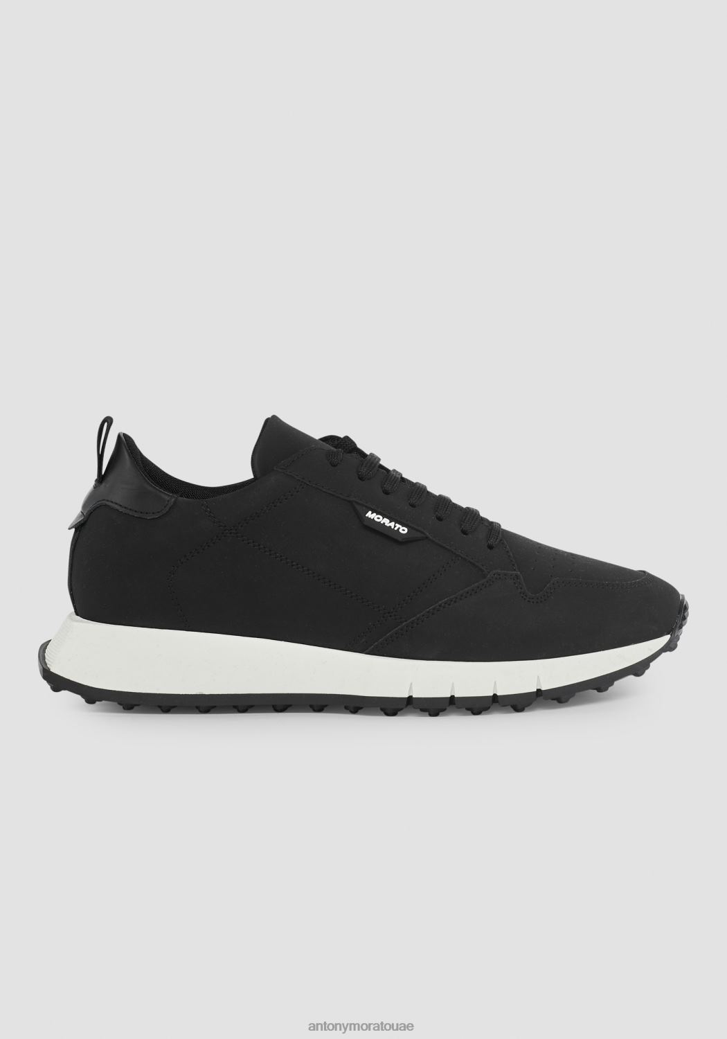 أحذية Antony Morato حذاء رياضي ويتون منخفض الرقبة مصنوع من جلد النوبوك المُعاد تدويره أسود رجال JVZ22307