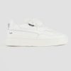 حذاء رياضي برباط منخفض مع جزء علوي من الجلد بلون خالص، مثقوب من الأمام، معزز بتفاصيل متباينة على الجانب ومقدمة القدم والكعب. خياطة متناغمة، ونعل منصة منقوش، ولوحة الشعار المطاطية المميزة تضفي لمسة نهائية رائعة