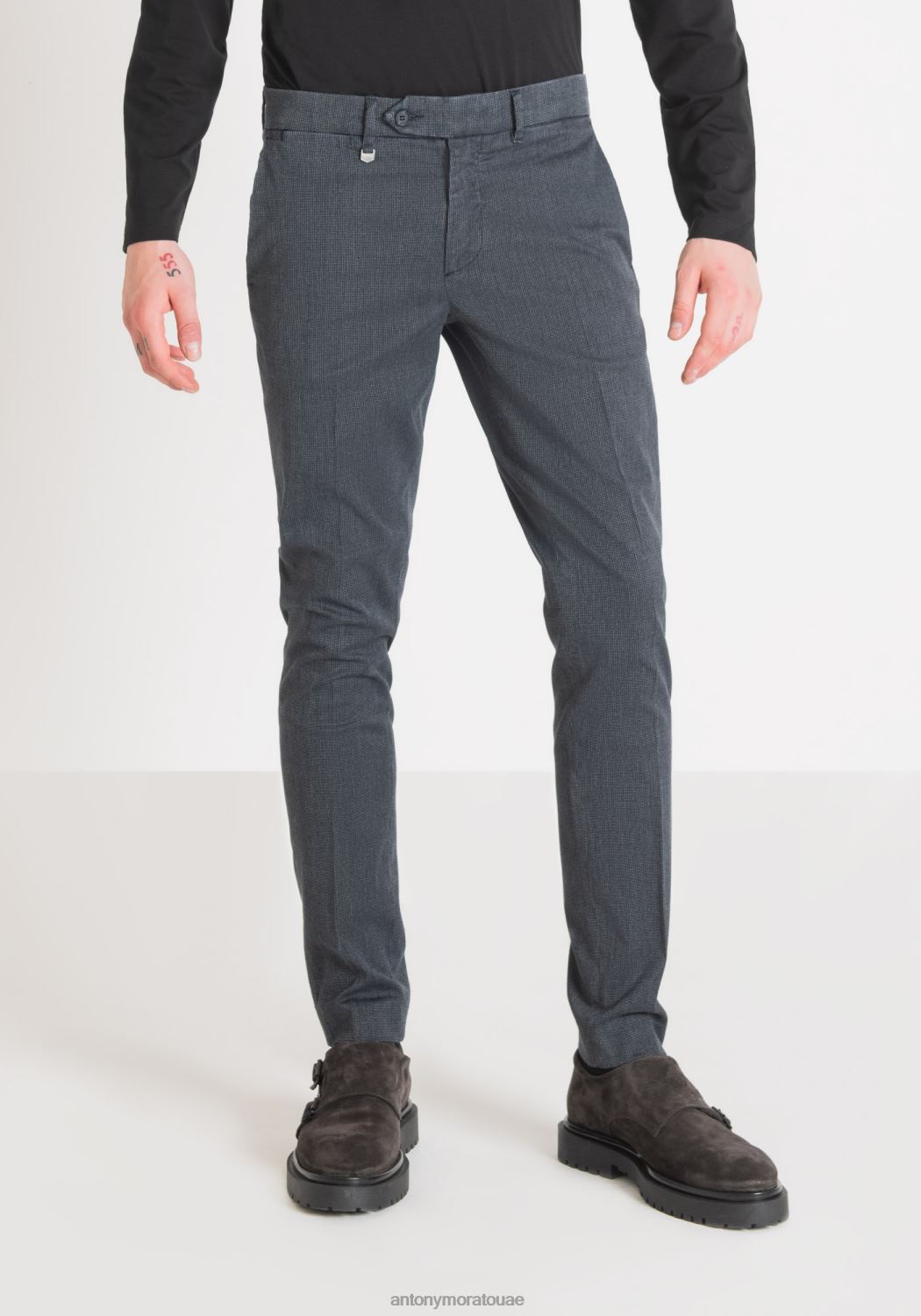 ملابس Antony Morato بنطال بريان بقصة ضيقة مصنوع من القطن المطاطي المنسوج بشكل دقيق حبر أزرق رجال JVZ22263