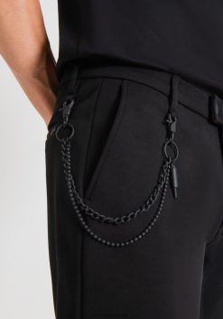 أقمشة رياضية وتصميم حضري: هذا البنطلون الرياضي ذو القصة الضيقة يعيد تعريف مفهوم الملابس الحضرية. مصنوع من نسيج قطني مريح، ومميز بزر جانبي للإغلاق، وجيوب مائلة، وحاشية مطاطية، وسلسلة متصلة بالحلقات. إنه ثوب يعبر الحدود الرسمية وغير الرسمية ويعيد تفسيرها بأسلوب أنتوني موراتو المثالي.