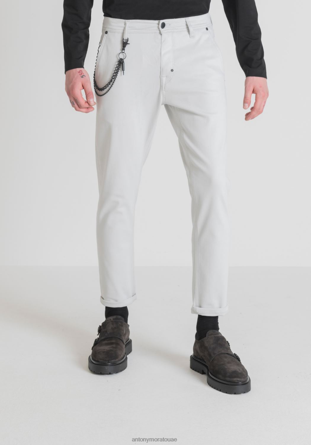 ملابس Antony Morato بنطلون بقصة ضيقة يصل إلى الكاحل من أوليفر، مصنوع من نسيج قطني ناعم ومطاط 1013 رجال JVZ22267