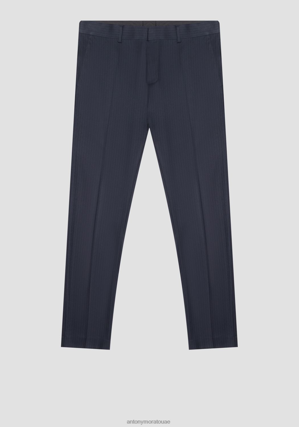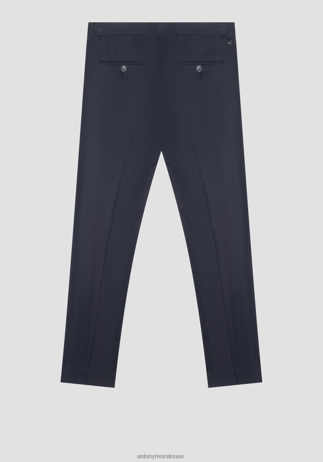 ملابس Antony Morato بنطلون بوني بقصة ضيقة مصنوع من مزيج الفيسكوز مع تصميم مقلم حبر أزرق رجال JVZ22246