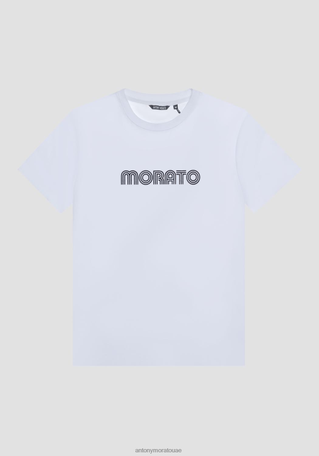 ملابس Antony Morato تيشيرت بقصة ضيقة للغاية من القطن المطاطي مع شعار منقوش أبيض رجال JVZ22191