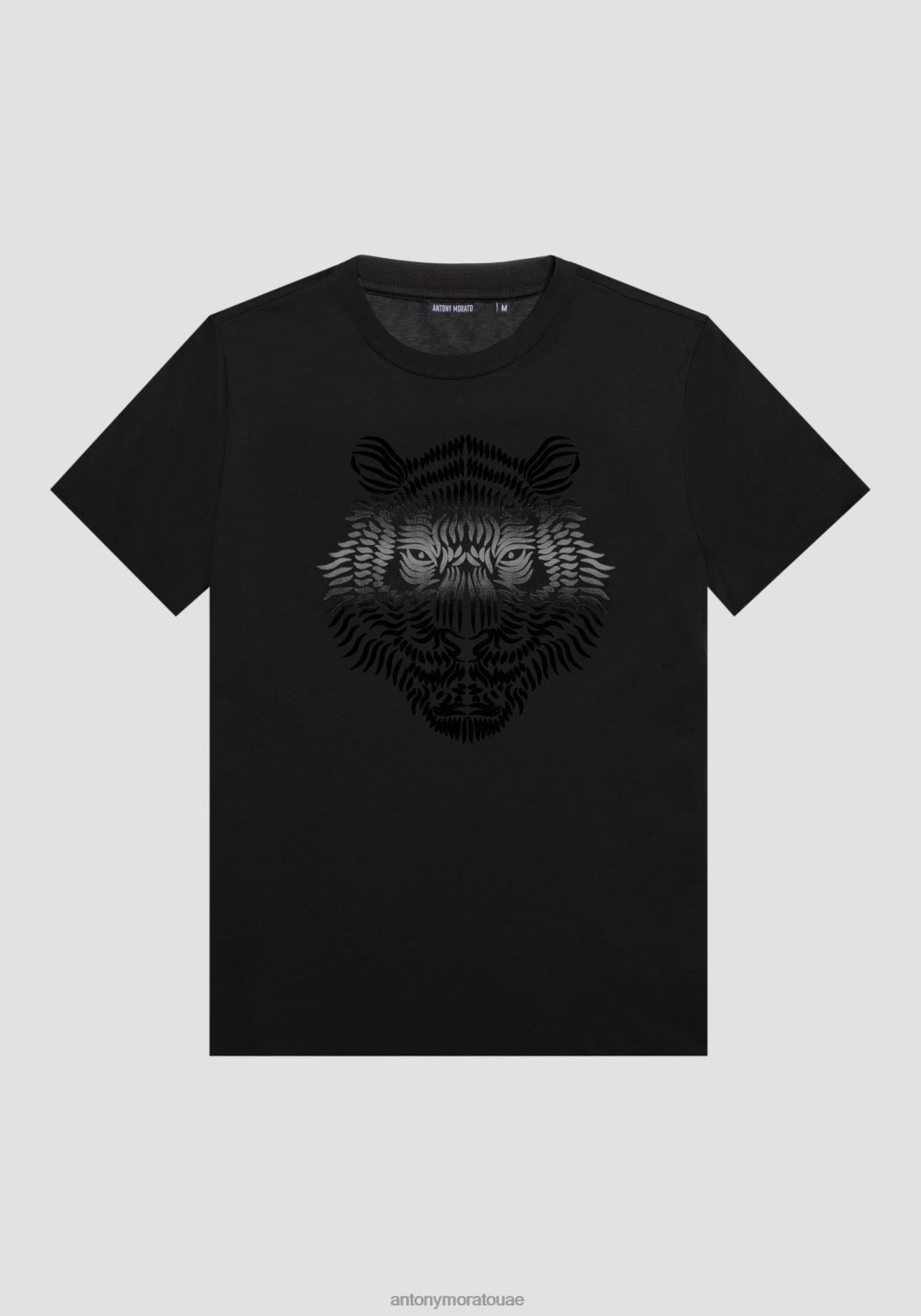 ملابس Antony Morato تيشيرت بقصة ضيقة من القطن مع طبعة نمر مظللة أسود رجال JVZ22162