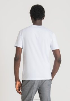 ملابس Antony Morato تيشيرت بقصة ضيقة من القطن الخالص مع طبعة أمامية أبيض رجال JVZ22154
