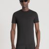 ملابس Antony Morato تيشيرت بقصة عادية من الفيسكوز المستدام مع طباعة الشعار أسود رجال JVZ22139