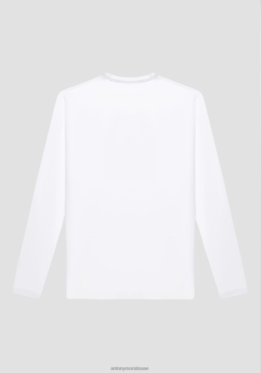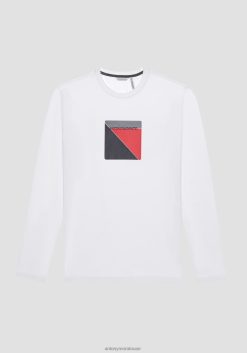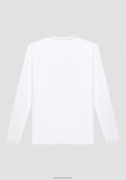 ملابس Antony Morato تيشيرت بقصّة نحيفة للغاية وأكمام طويلة من القطن المطاطي مع طبعة شعار مطاطية أبيض رجال JVZ22178