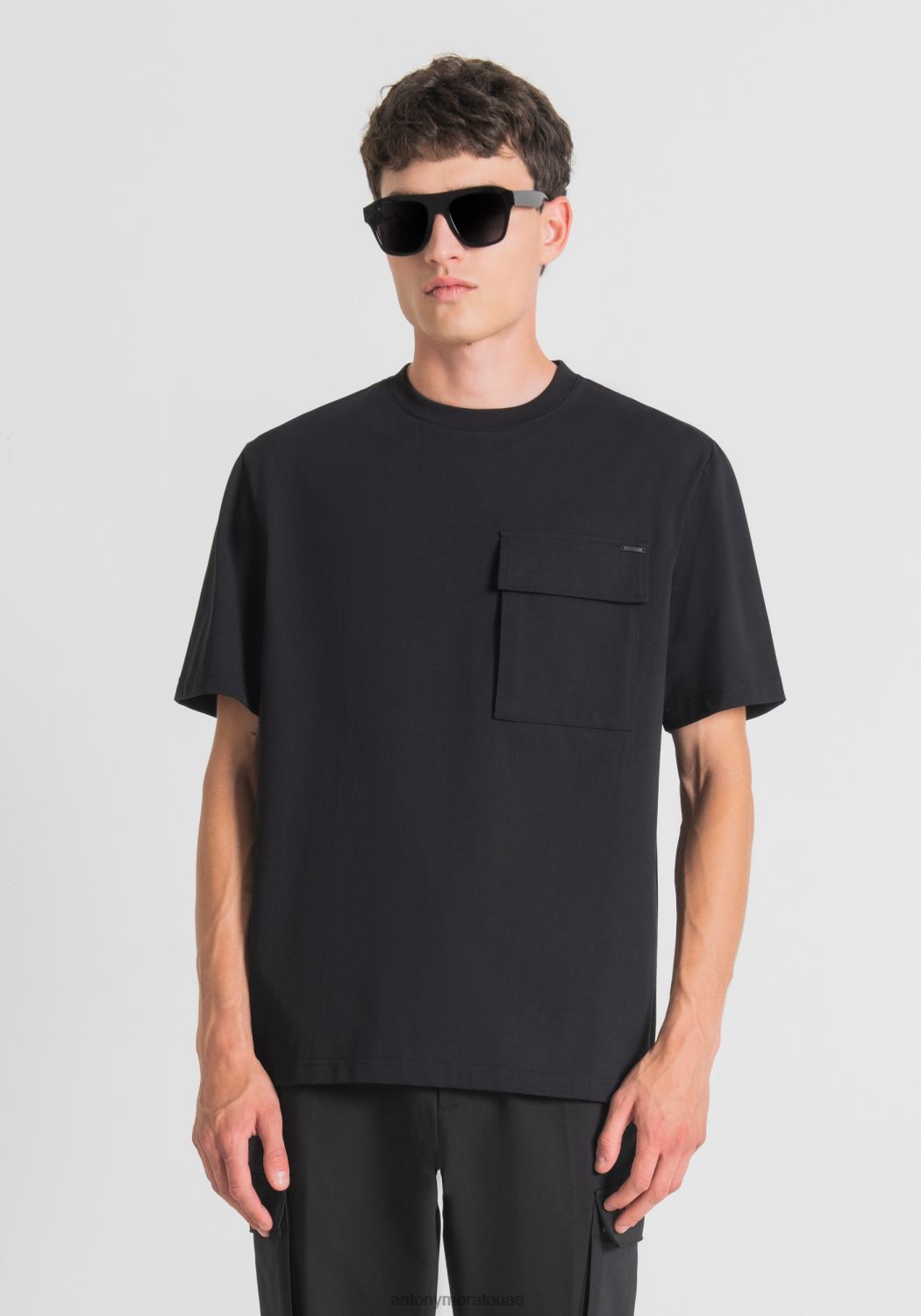ملابس Antony Morato تيشيرت كبيرة الحجم من القطن الخالص مع جيب جانبي على شكل قلب أسود رجال JVZ22137