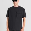 ملابس Antony Morato تيشيرت كبيرة الحجم من القطن الخالص مع جيب جانبي على شكل قلب أسود رجال JVZ22137