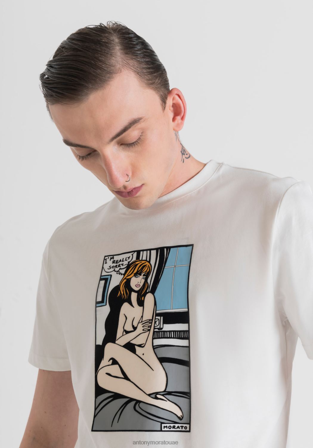 ملابس Antony Morato تي شيرت بقصة عادية مصنوع من القطن بنسبة 100% مع طباعة صغيرة كريم رجال JVZ22182