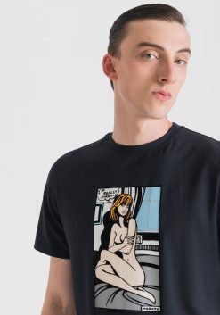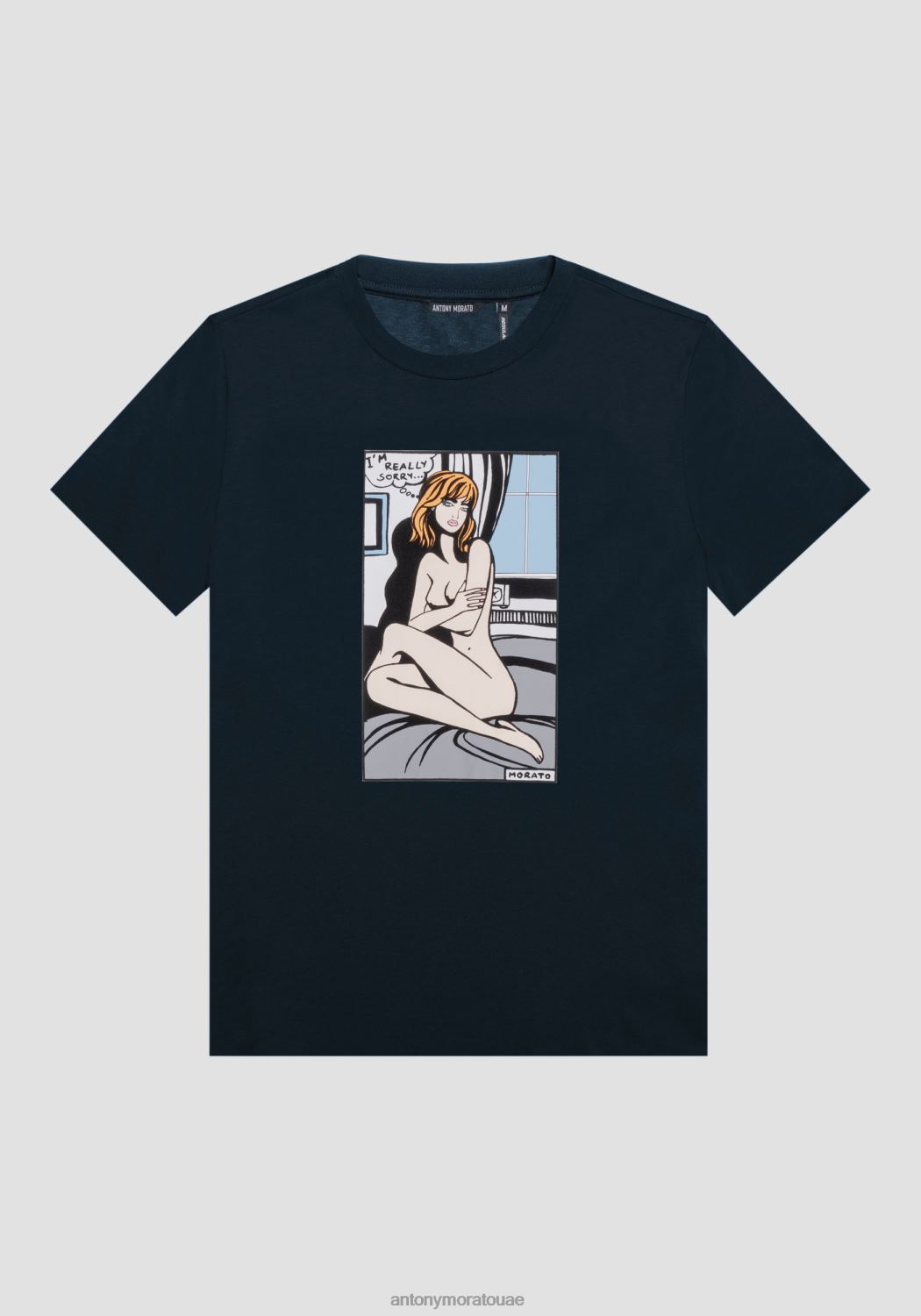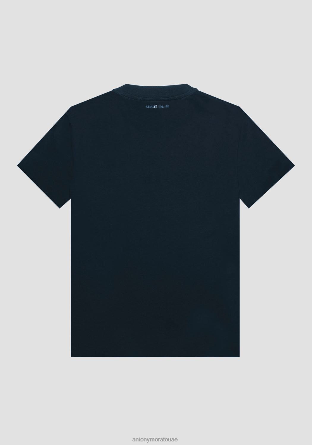 ملابس Antony Morato تي شيرت بقصة عادية مصنوع من القطن بنسبة 100% مع طباعة صغيرة حبر أزرق رجال JVZ22181
