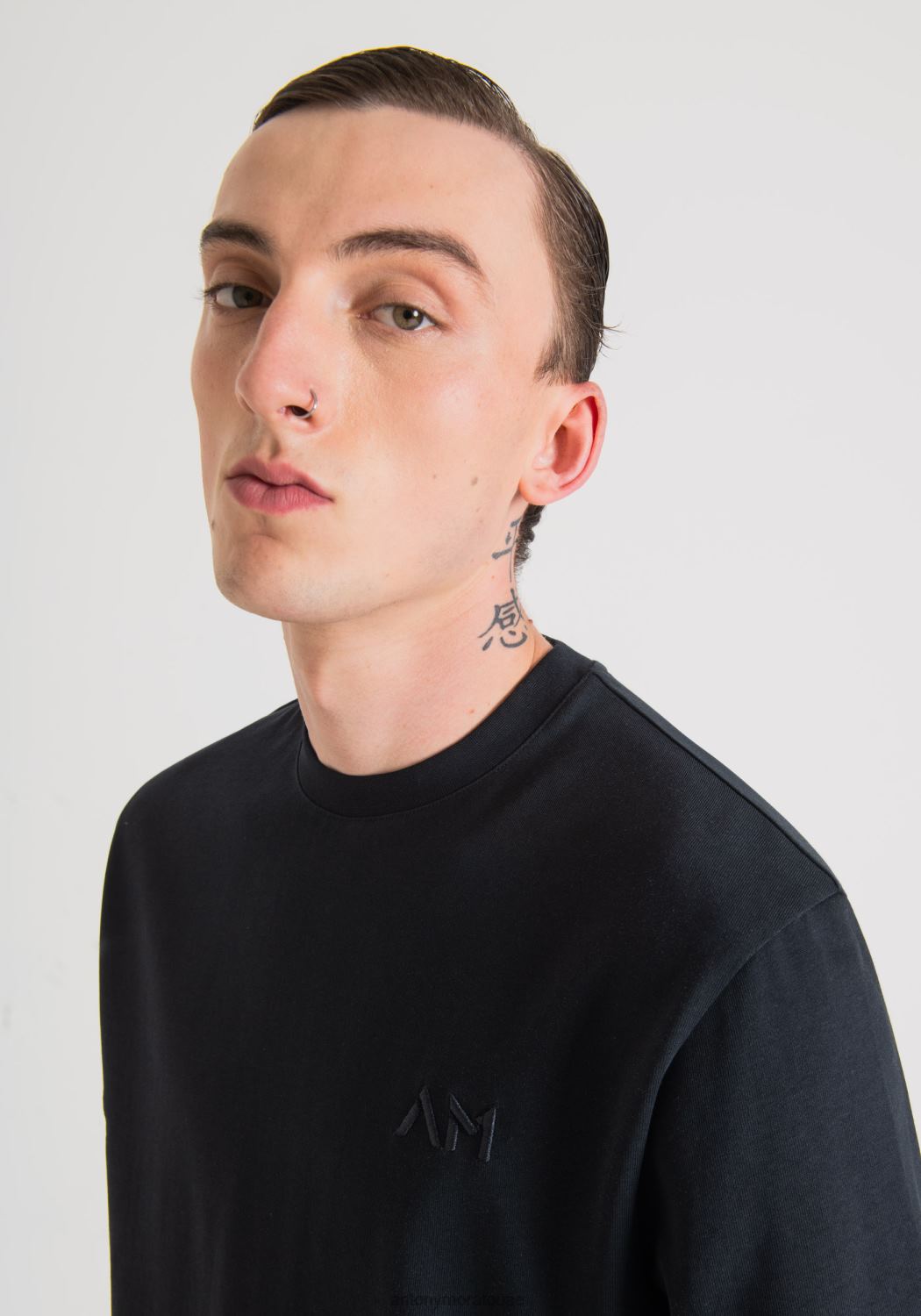 ملابس Antony Morato تي شيرت كبير الحجم من القطن الخالص مع شعار مطرز حبر أزرق رجال JVZ22196
