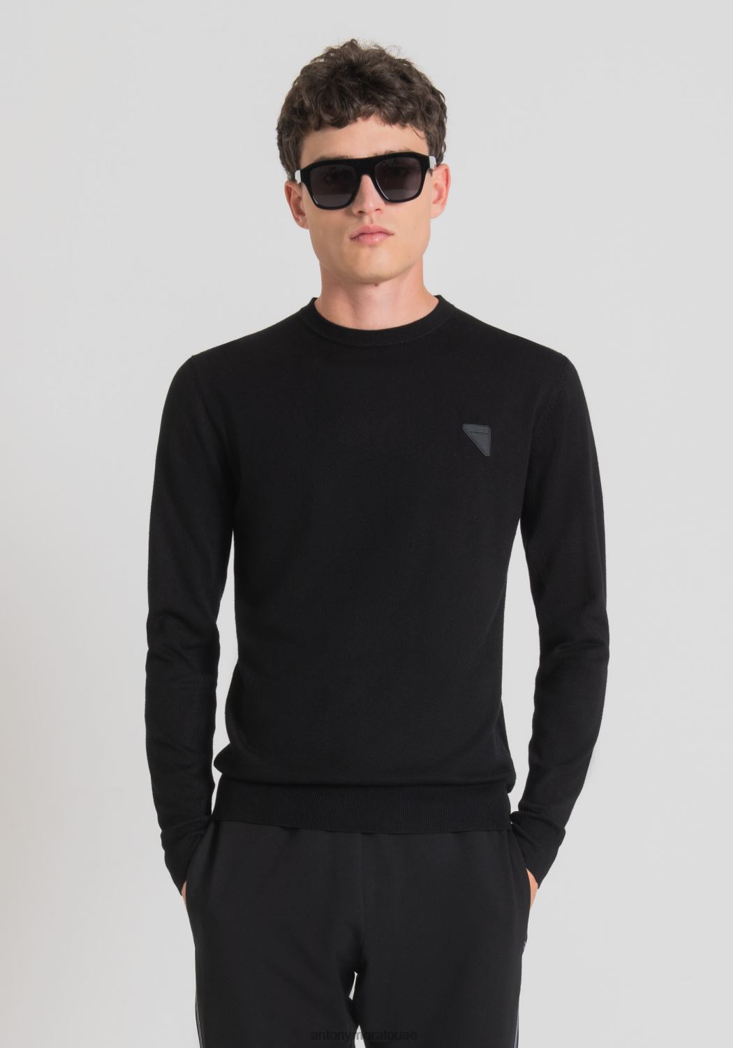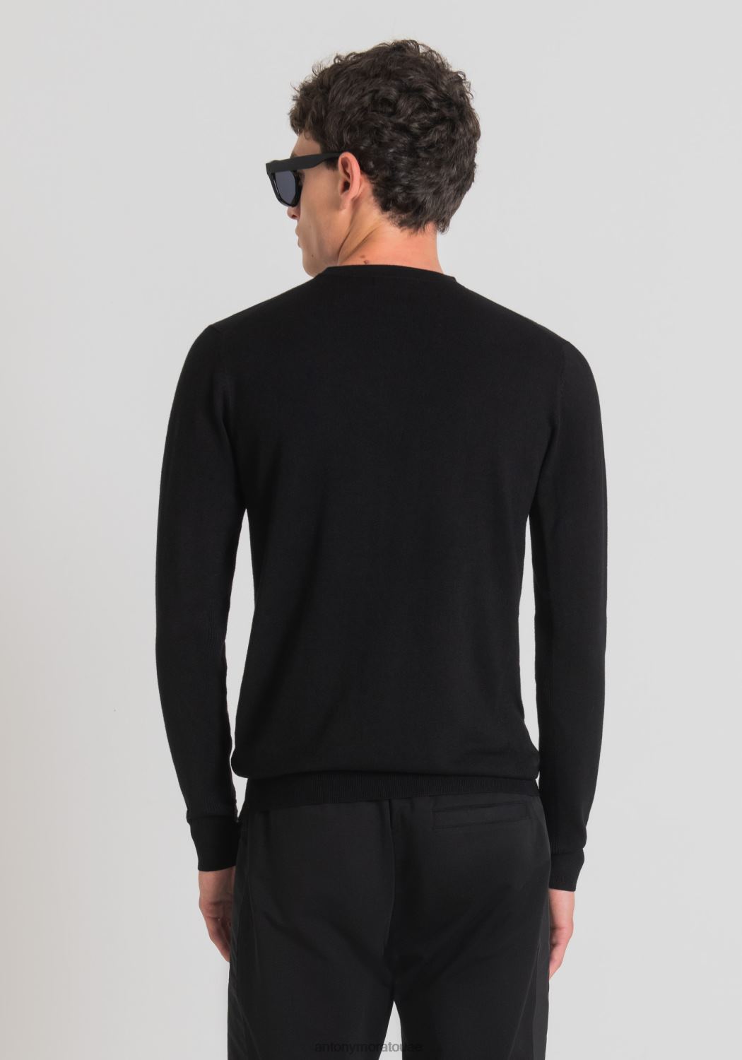 يتعايش الطراز المعاصر والراحة في هذه السترة ذات الرقبة الدائرية والأكمام الطويلة. الملابس مصنوعة من مزيج من الفيسكوز المطاطي ذو اللون الصلب، مع غرزة تخزين. صمم أنتوني موراتو هذا الموديل بياقة أنبوبية، وأضلاع عند الرسغين وفي الأسفل، وكذلك على طول الوركين وعلى الأكمام. ويتميز بتفاصيل سرية وراقية، مثل اللوحة المعدنية التي تحمل الشعار مع قاعدة مطاطية موضوعة على الجانب الأيسر من الصدر.