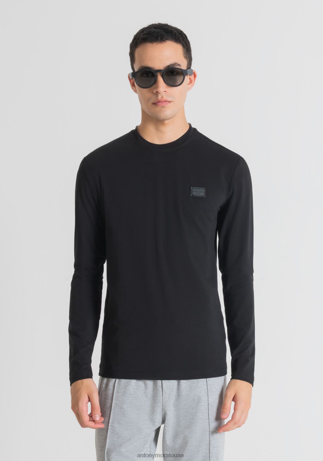 ملابس Antony Morato سترة فائقة النحافة مصنوعة من قطن الجيرسيه الناعم مع علامة تبويب الشعار أسود رجال JVZ2296
