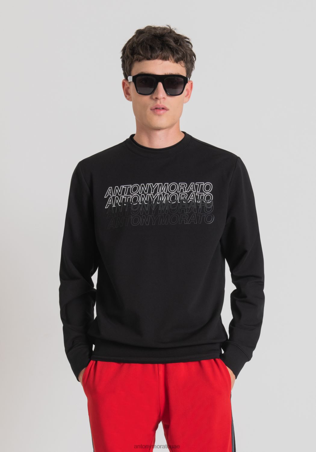 سويت شيرت بدون غطاء رأس مصنوع من القطن الناعم القابل للتمدد، مع طباعة شعار مطاطي متباين على الصدر. يقدم أنتوني موراتو نموذجًا بقصة ضيقة مع فتحة رقبة دائرية وأصفاد وأسفل مطاطية. إنه الخيار المثالي لإضافة لمسة من الشخصية إلى أبسط الملابس دون التضحية بالراحة.