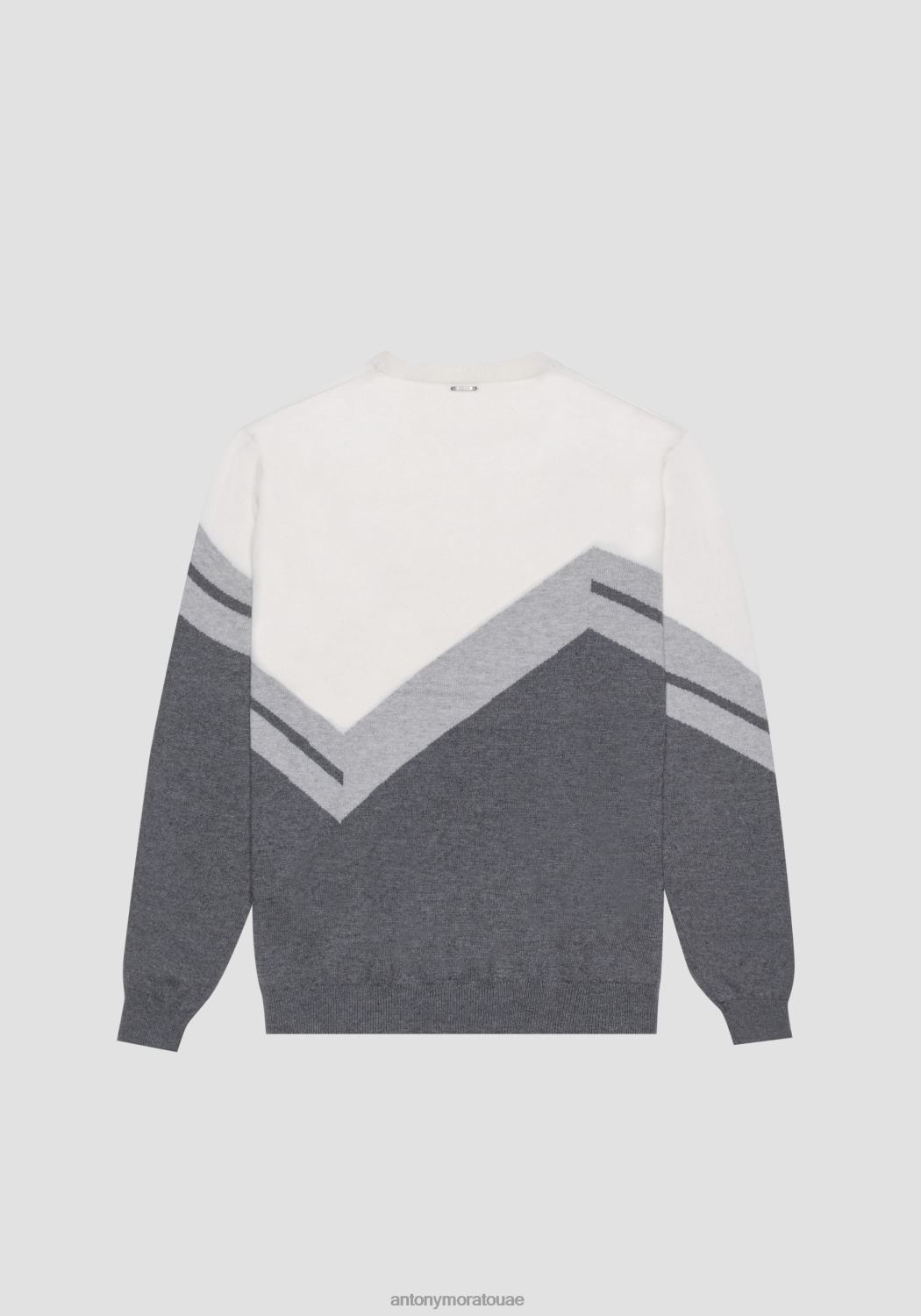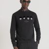 ملابس Antony Morato سويت شيرت بقصة عادية مصنوع من مزيج الصوف مع شريط من الجاكار مزيج رمادي غامق رجال JVZ2253
