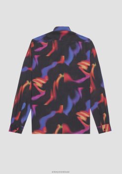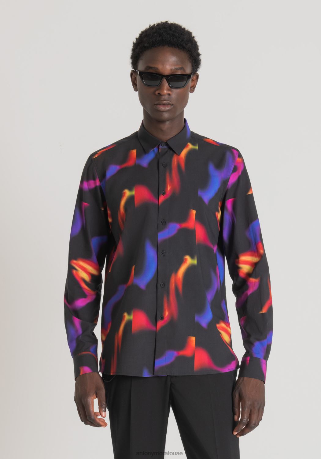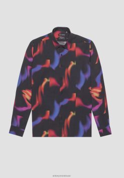 ملابس Antony Morato قميص برشلونة ذو قصة مستقيمة مصنوع من مزيج القطن الناعم بنمط متعدد الألوان أسود رجال JVZ22116