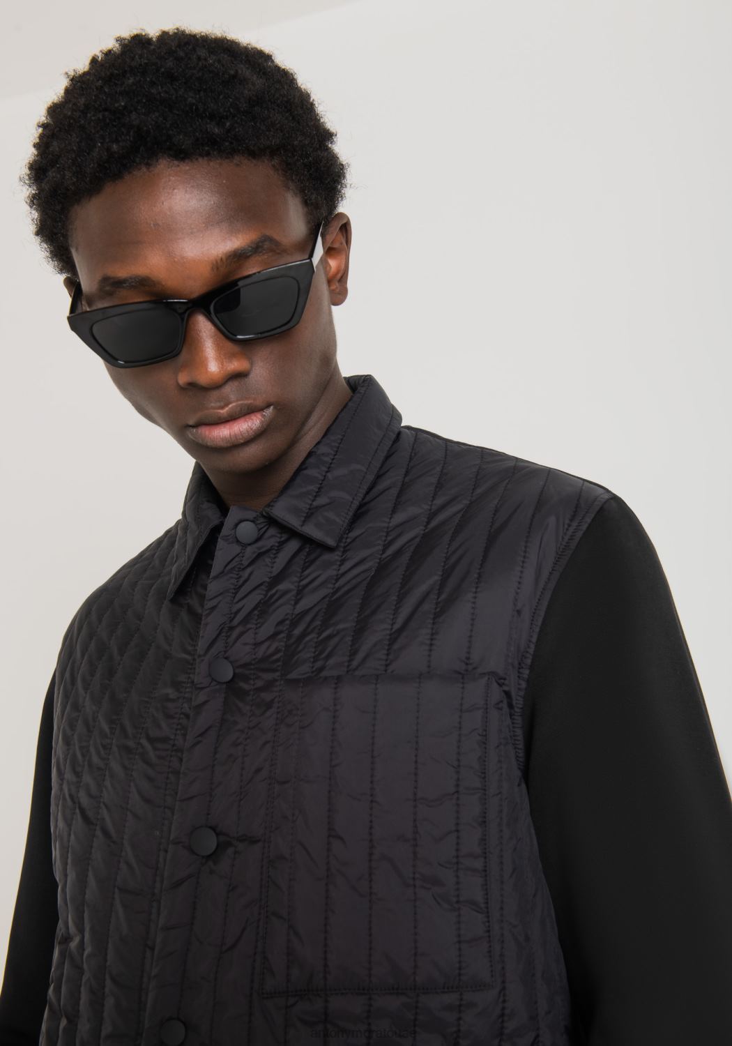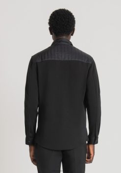 ملابس Antony Morato قميص بقصة عادية مصنوع من النايلون المبطن والقماش بلون متباين أسود رجال JVZ22124