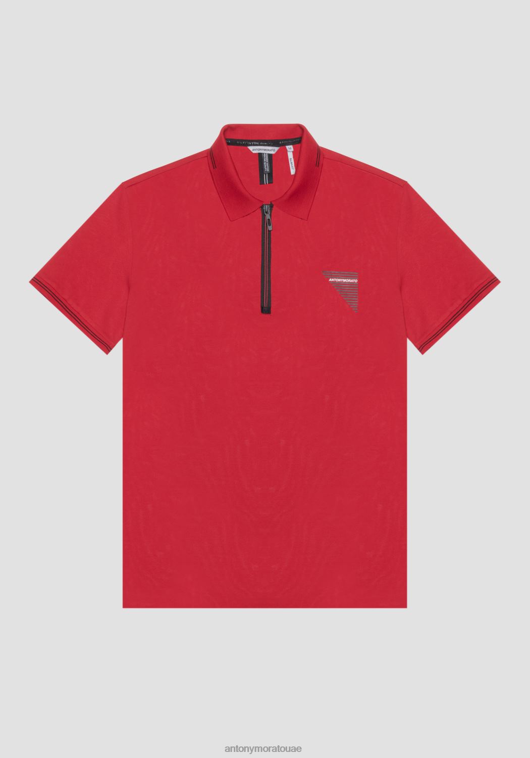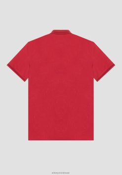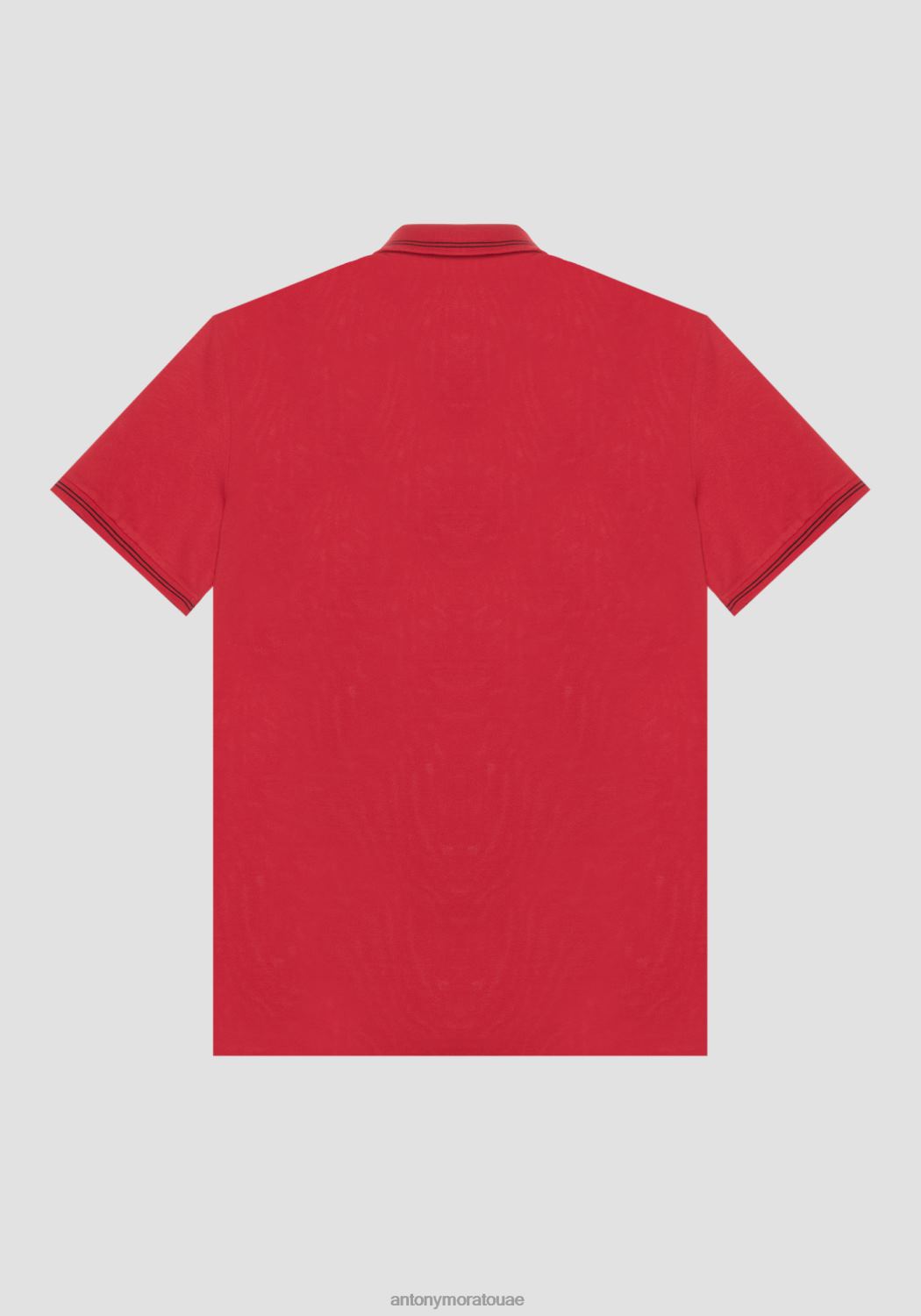 ملابس Antony Morato قميص بولو بقصة ضيقة من قطن بيكيه المرسيري مع طباعة شعار مطاطية أحمر رجال JVZ22174