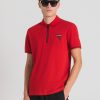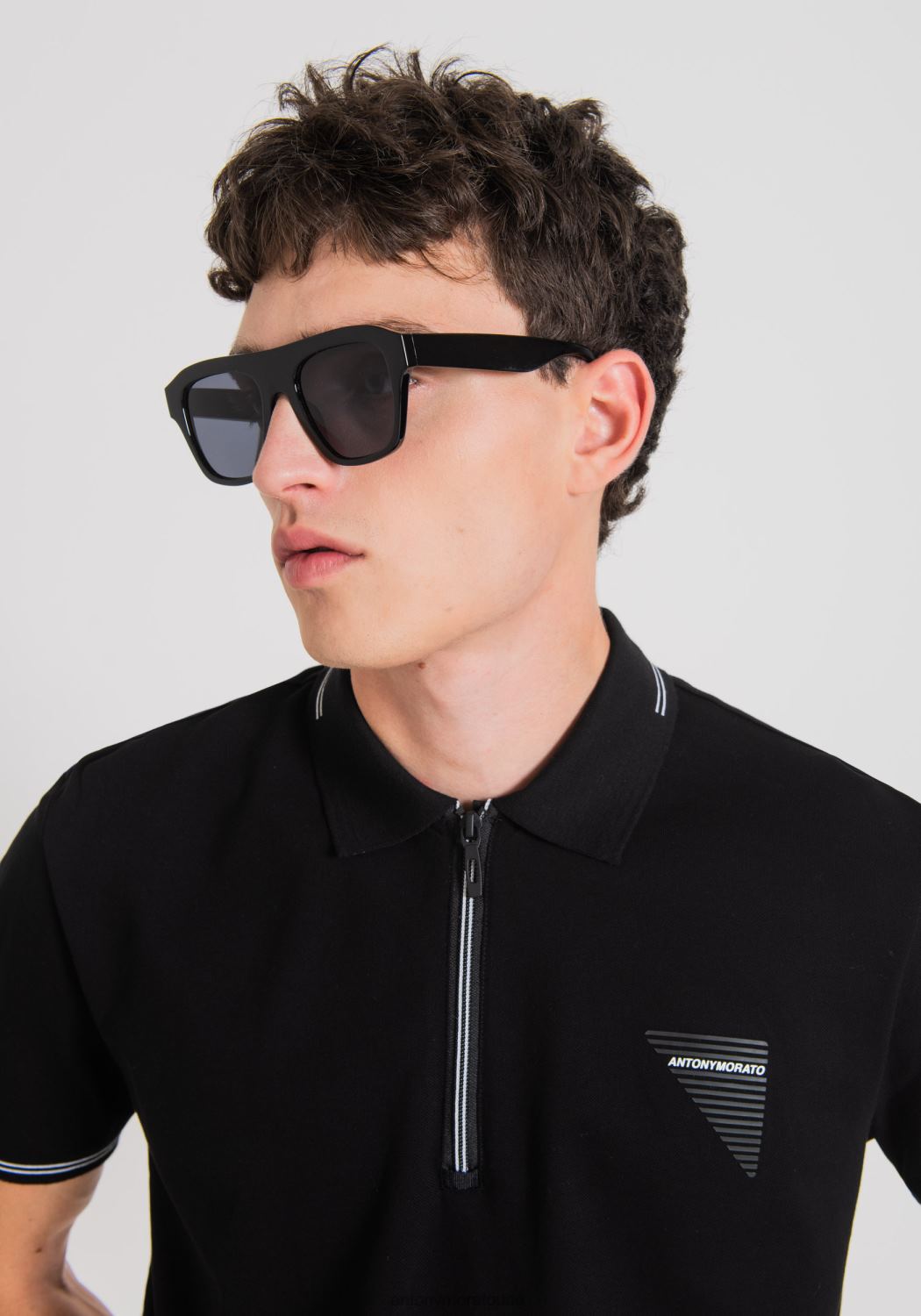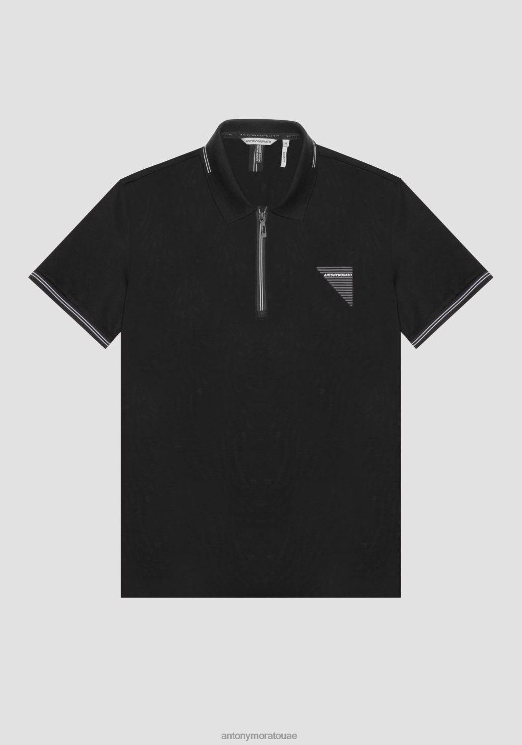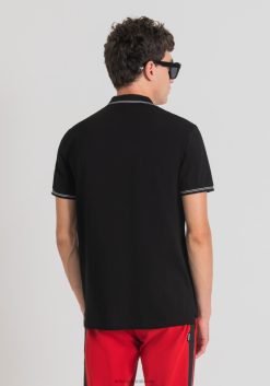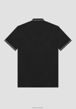 ملابس Antony Morato قميص بولو بقصة ضيقة من قطن بيكيه المرسيري مع طباعة شعار مطاطية أسود رجال JVZ22173