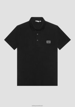 ملابس Antony Morato قميص بولو فائق النحافة مصنوع من القطن المطاطي مع رقعة الشعار أسود رجال JVZ22179