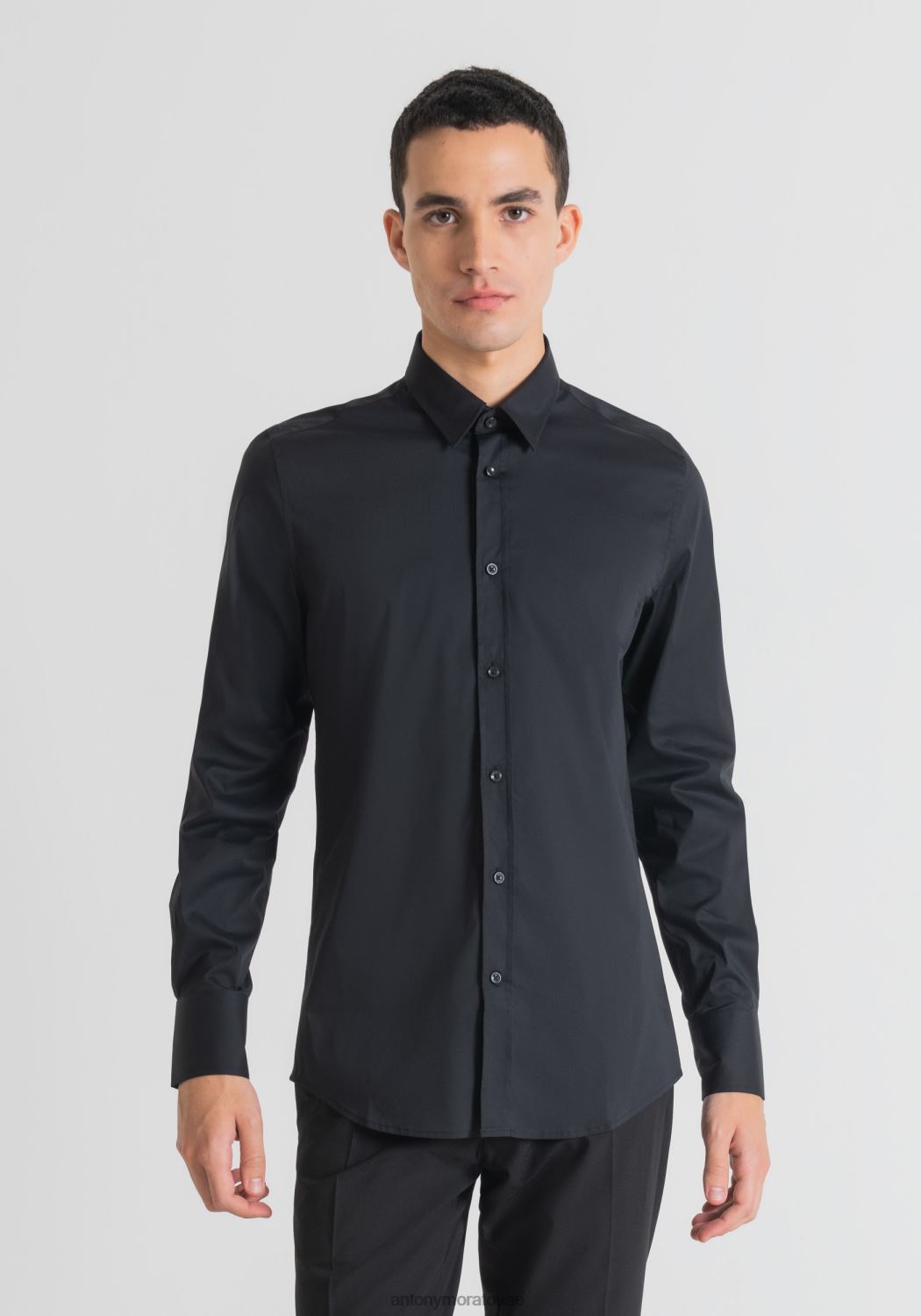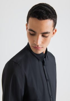 ملابس Antony Morato قميص ميلانو فائق النحافة مصنوع من قماش البوبلين المصنوع من مزيج القطن المطاطي أسود رجال JVZ22110