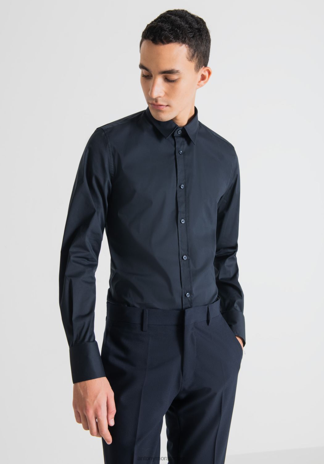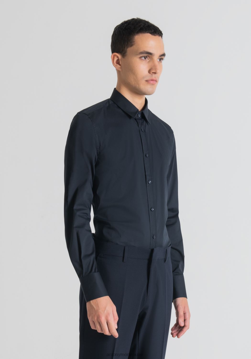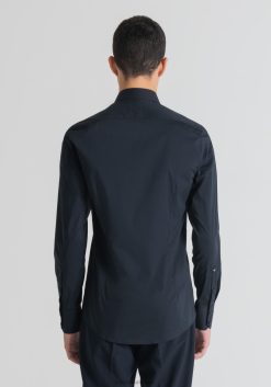 ملابس Antony Morato قميص ميلانو فائق النحافة مصنوع من قماش البوبلين المصنوع من مزيج القطن المطاطي حبر أزرق رجال JVZ22123