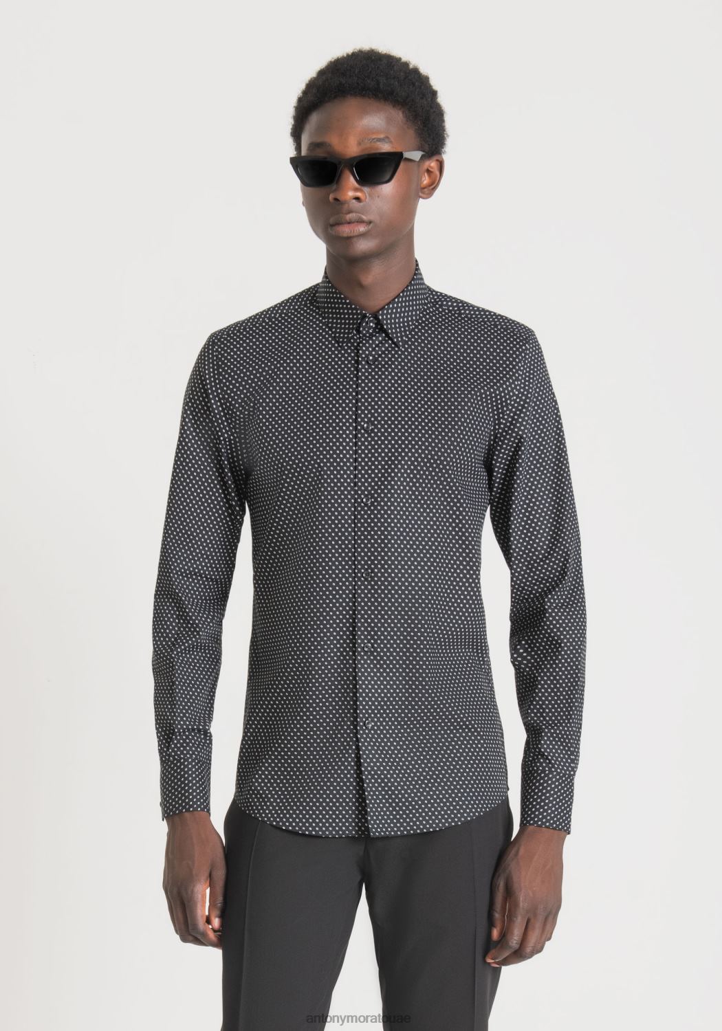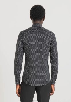 ملابس Antony Morato قميص نابولي بقصة ضيقة من القطن المطبوع أسود رجال JVZ22107