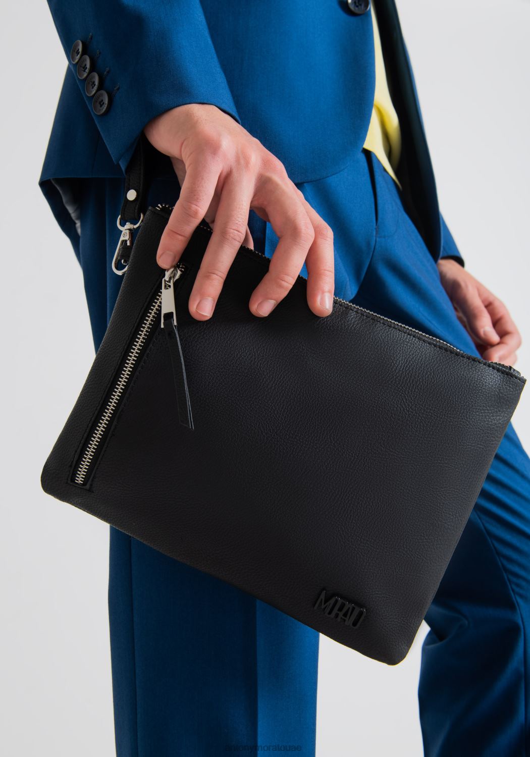 صمم أنتوني موراتو هذه الحقيبة من الجلد الصناعي ذو اللون الصلب. يأتي الإكسسوار مزودًا بجيبين بسحاب وغطاء قابل للإزالة مزود بخطاف، مما يجعله مثاليًا للإمساك بمعصمك. يكمل شعار موراتو الصغير ذو اللون الواحد ملحقًا يسمح لك بحمل كل ما تحتاجه معك طوال اليوم.