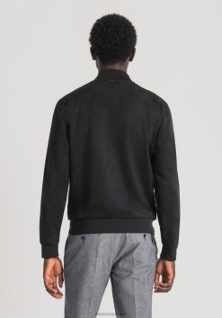 ملابس Antony Morato سويت شيرت بقصة ضيقة مصنوع من نسيج مطاطي بتأثير جلد الغزال أسود رجال JVZ2265