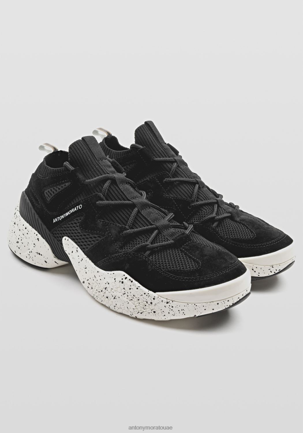 أحذية Antony Morato حذاء رياضي أوسلو للجري مصنوع من الجيرسيه المحبوك مع تفاصيل من الجلد السويدي الصناعي أسود رجال JVZ22325