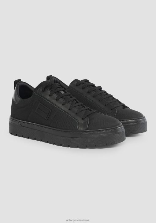 أحذية Antony Morato حذاء رياضي معدني جريء منخفض مع تفاصيل جلدية أسود رجال JVZ22298