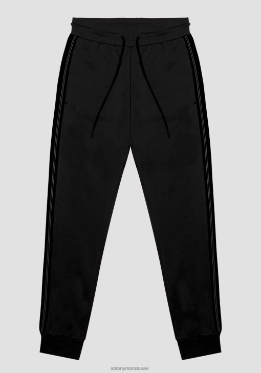 ملابس Antony Morato بنطال رياضي بقصة ضيقة من القطن المطاطي مع تباين في النسيج الفني أسود رجال JVZ22275