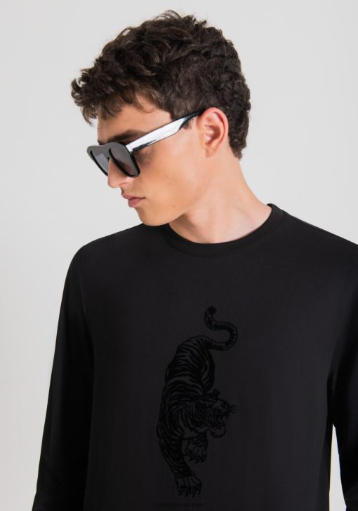 ملابس Antony Morato تيشيرت بقصة عادية مصنوع من القطن بنسبة 100% مع طباعة النمر أسود رجال JVZ22158