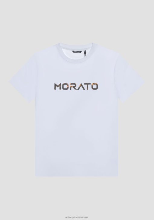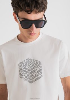 ملابس Antony Morato تيشيرت بقصة عادية من القطن مع طبعة شعار عاكسة كريم رجال JVZ22209