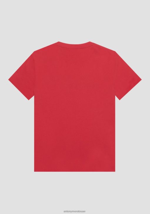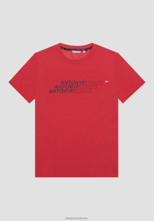 ملابس Antony Morato تيشيرت بقصة عادية من القطن مع طبعة شعار بتأثير مطاطي أحمر رجال JVZ22172