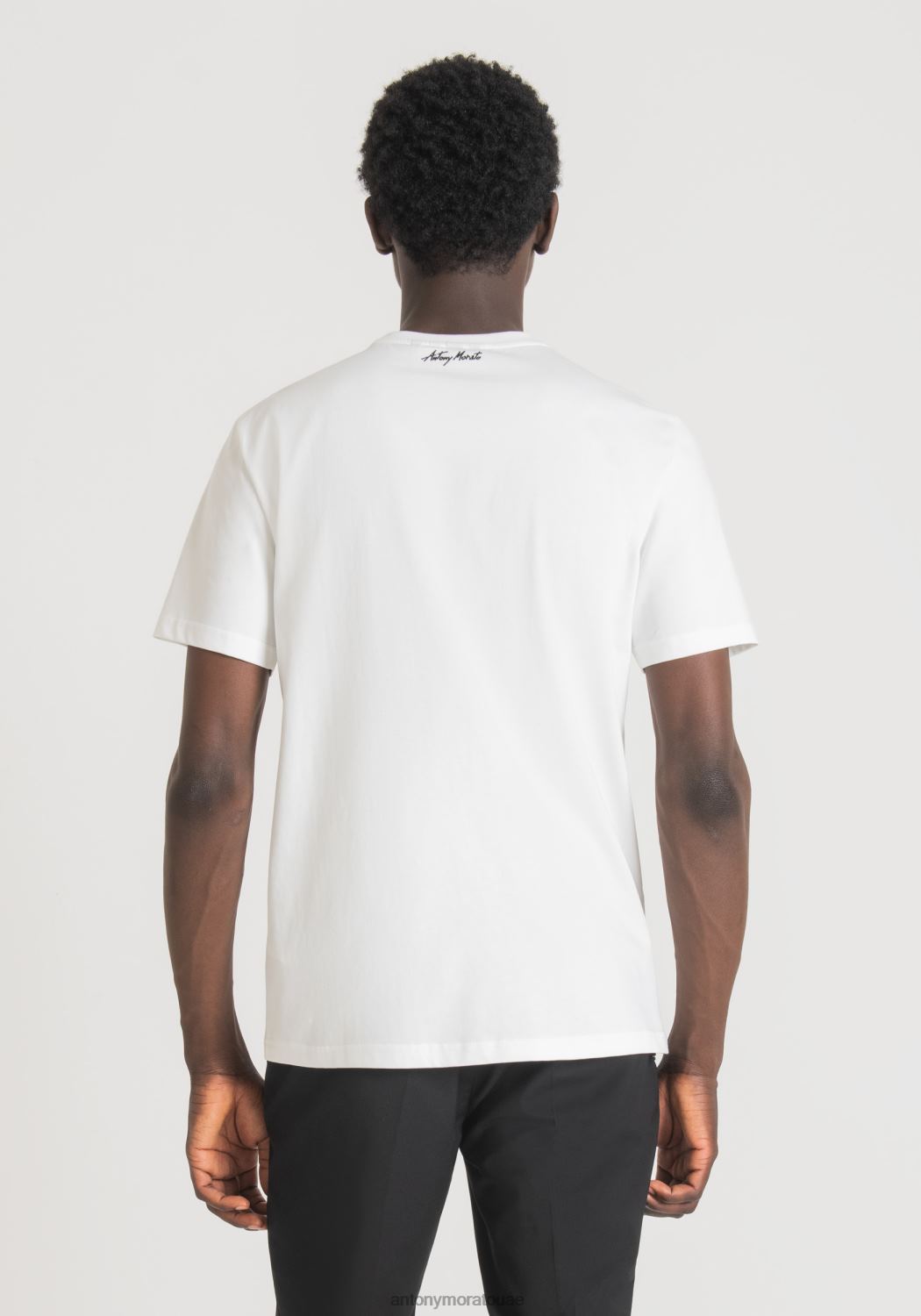 ملابس Antony Morato تيشيرت بقصة عادية من القطن مع طبعة شعار عاكسة كريم رجال JVZ22209