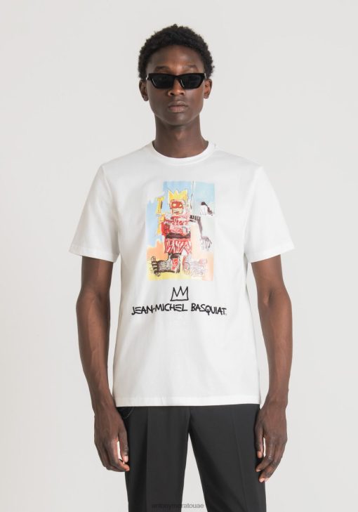 ملابس Antony Morato تيشيرت بقصة عادية من القطن مع طبعة باسكيات كريم رجال JVZ22213