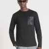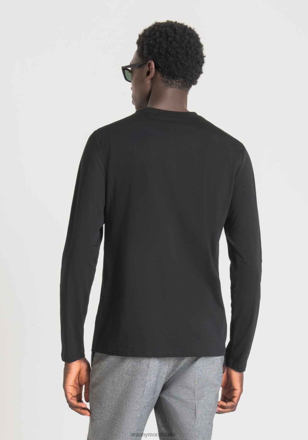 ملابس Antony Morato تيشيرت بقصة عادية وأكمام طويلة من القطن الناعم مع طبعة سيارة أسود رجال JVZ22210