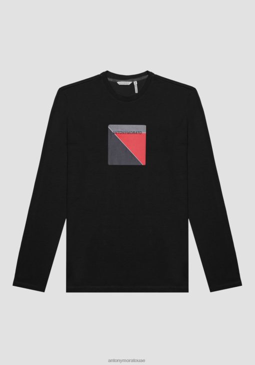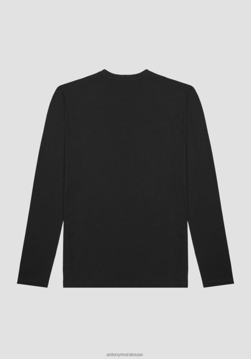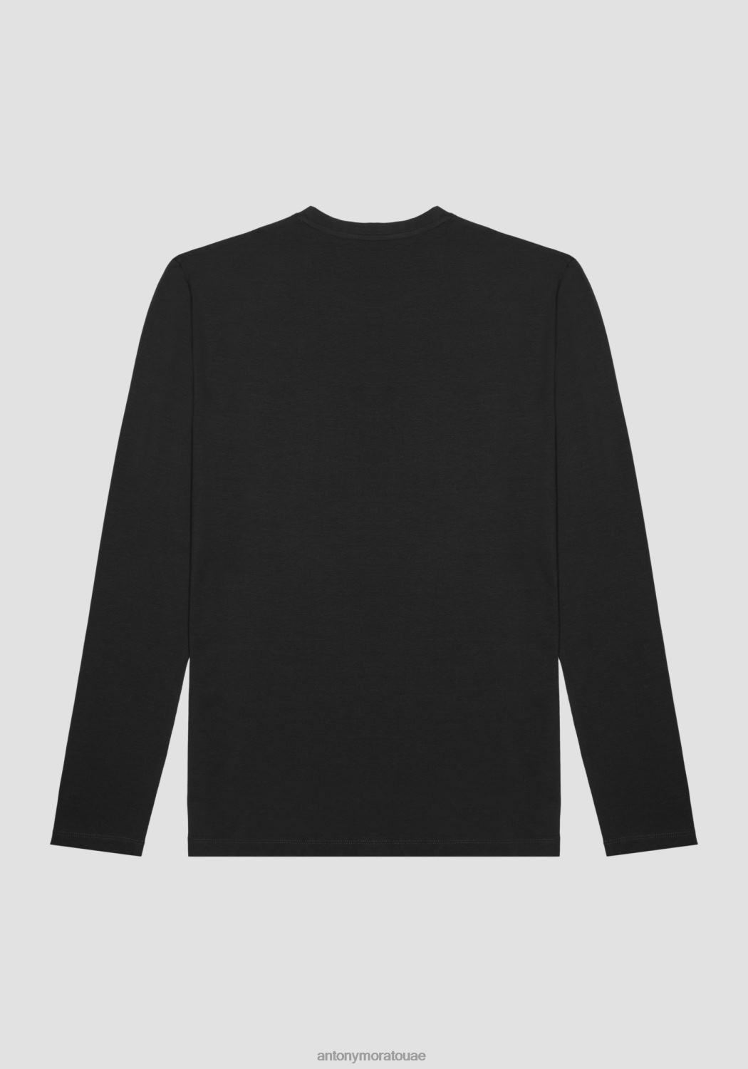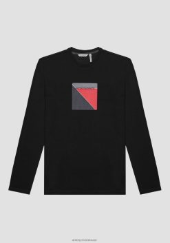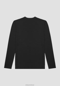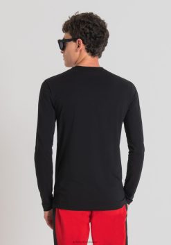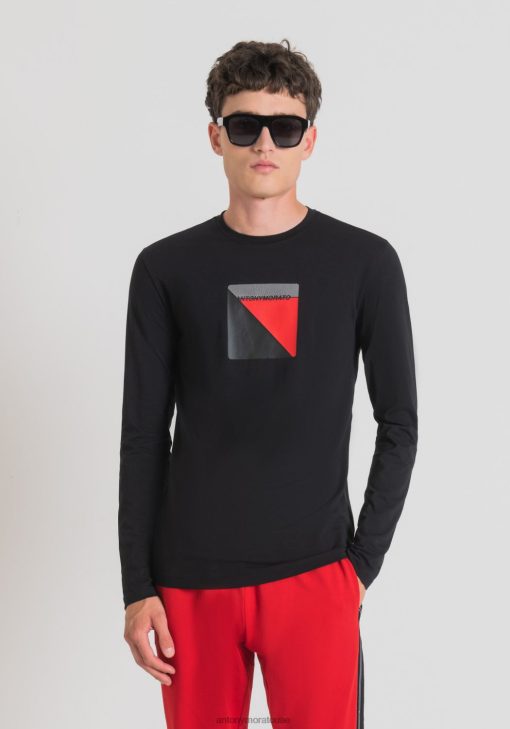 ملابس Antony Morato تيشيرت بقصّة نحيفة للغاية وأكمام طويلة من القطن المطاطي مع طبعة شعار مطاطية أسود رجال JVZ22177