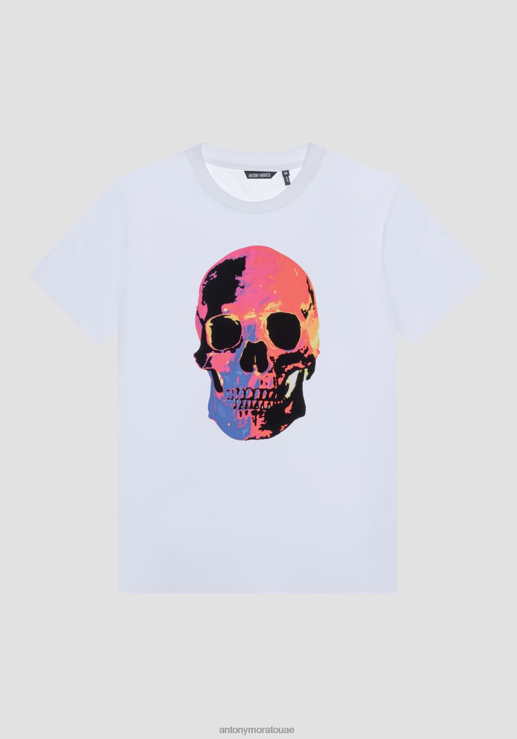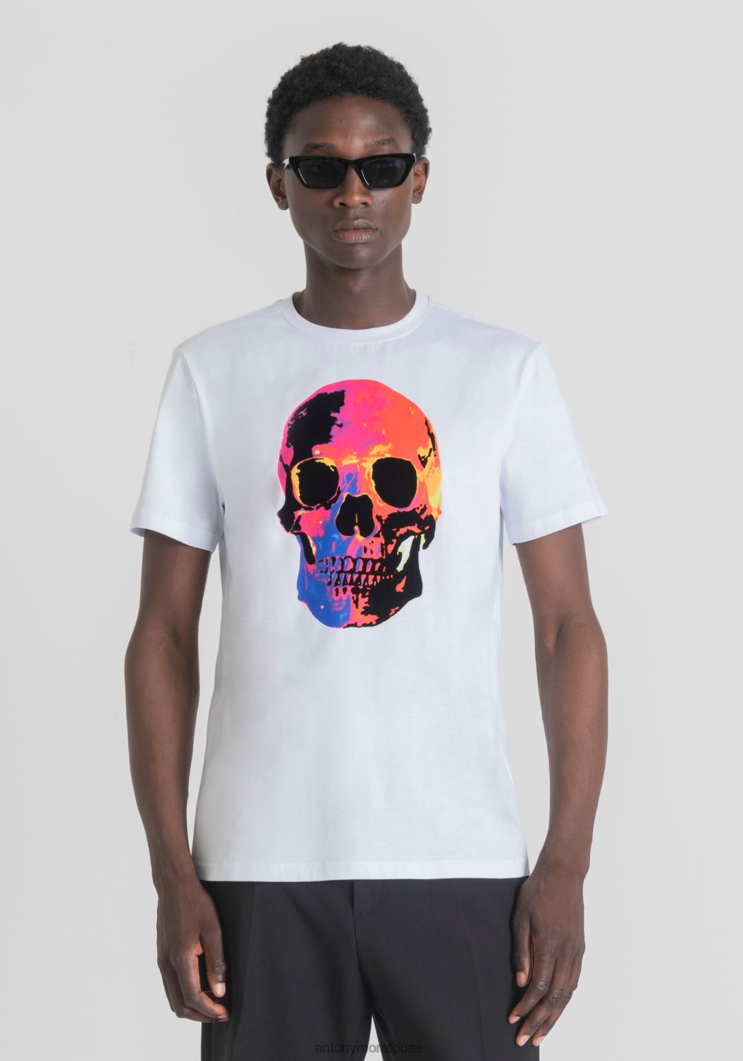 ملابس Antony Morato تي شيرت بقصة ضيقة مصنوع من القطن الناعم بنسبة 100% مع طباعة جمجمة أبيض رجال JVZ22187