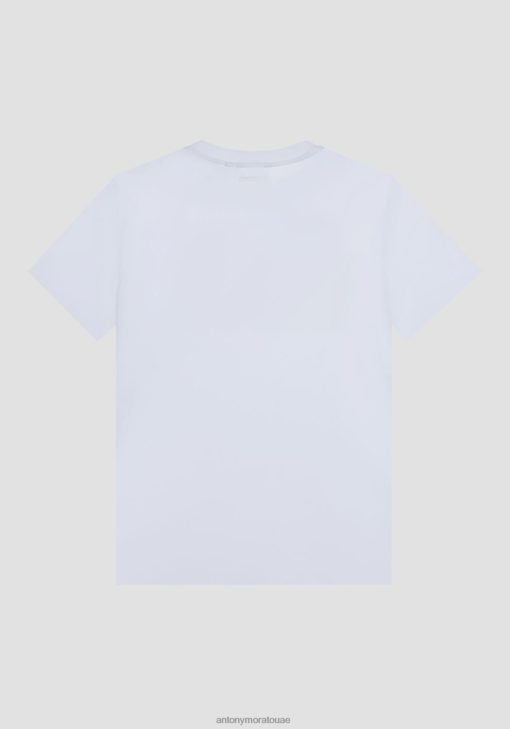 ملابس Antony Morato تيشيرت بقصّة نحيفة للغاية من القطن المطاطي مع طبعة أمامية أبيض رجال JVZ22159