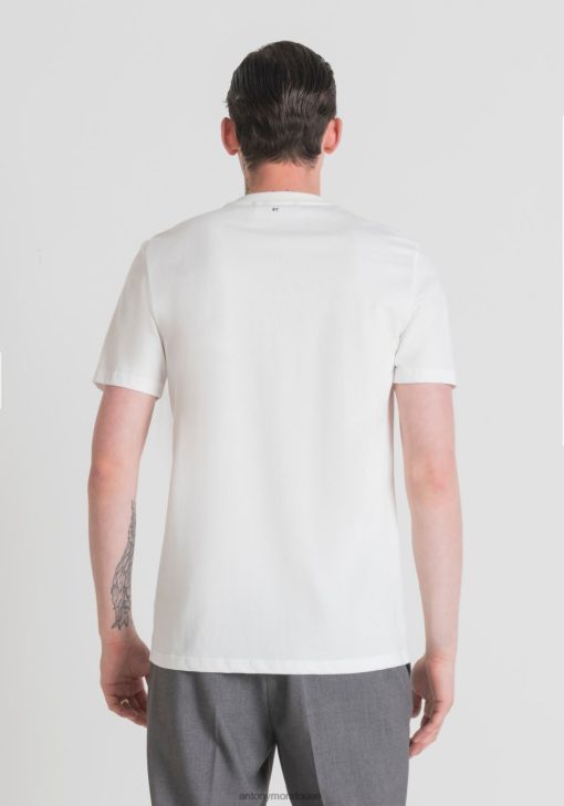 ملابس Antony Morato تيشيرت بقصة عادية من القطن الخالص مع طباعة شعار مطاطية كريم رجال JVZ22149