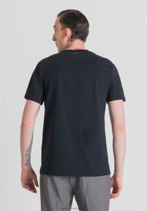 ملابس Antony Morato تي شيرت بقصة عادية مصنوع من القطن بنسبة 100% مع طباعة صغيرة حبر أزرق رجال JVZ22181