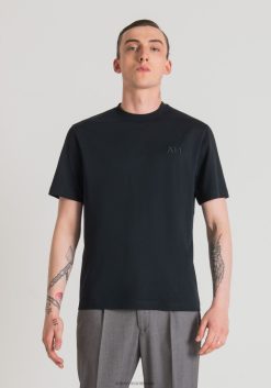 ملابس Antony Morato تي شيرت كبير الحجم من القطن الخالص مع شعار مطرز حبر أزرق رجال JVZ22196