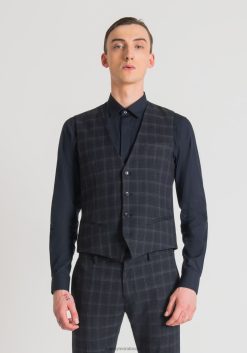 ملابس Antony Morato صدرية بقصة ضيقة من مزيج الفيسكوز المطاطي مع نقش مربعات حبر أزرق رجال JVZ2232