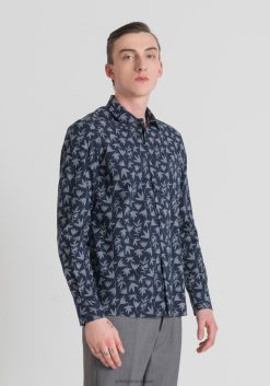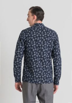 ملابس Antony Morato سترة بقصة عادية مصنوعة من مزيج الموهير مع نمط جاكار حبر أزرق رجال JVZ2280