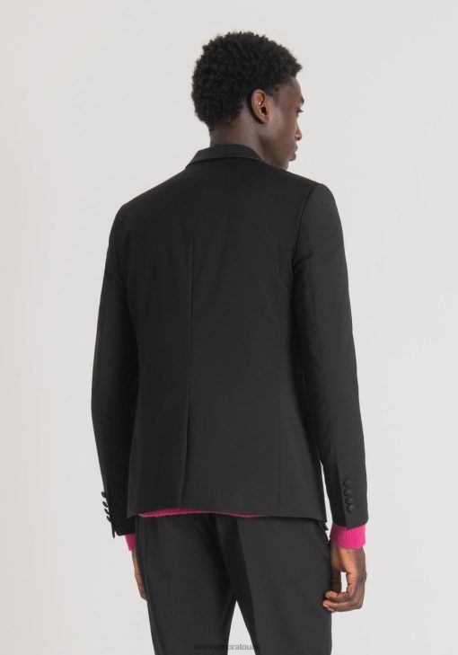 ملابس Antony Morato سترة بقصة ضيقة مصنوعة من نسيج تقني مبطن مع غطاء رأس أسود رجال JVZ2212